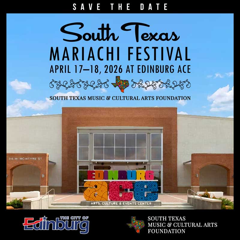 Save the date for the 2026 South Texas Mariachi Festival, hosted by the City of Edinburg and the South Texas Music & Cultural Arts Foundation! Join us April 17th-18th at the beautiful ACE Center in Edinburg, Texas. More details coming soon!